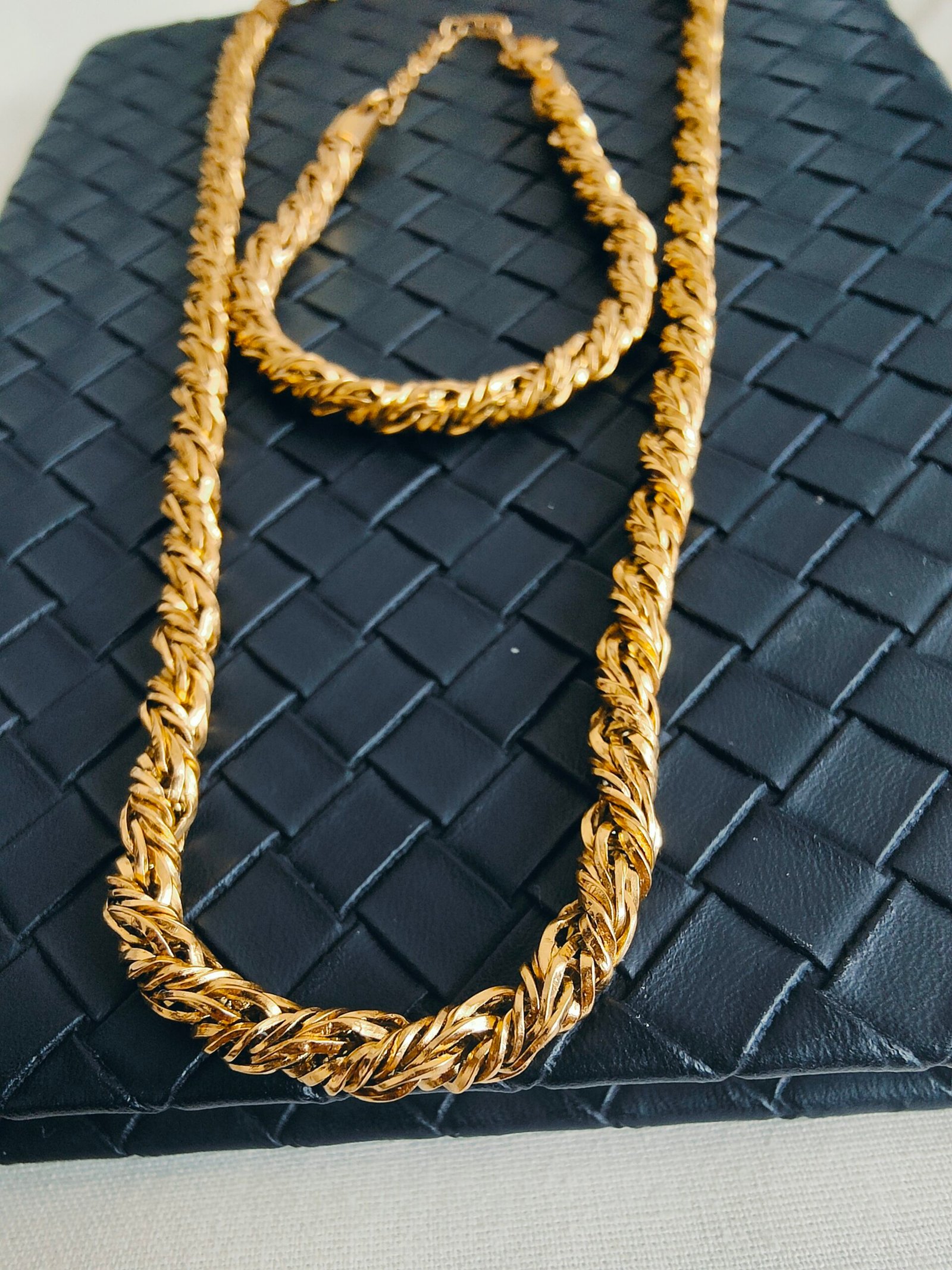 Introducing the Bianca Élan Twist Collection (COMBO), a stunning fusion of elegance and durability designed to complement the modern woman’s lifestyle. This exquisite set features a 5mm braided twist chain crafted from 18k gold-plated stainless steel, ensuring a radiant finish that resists tarnish for long-lasting brilliance.